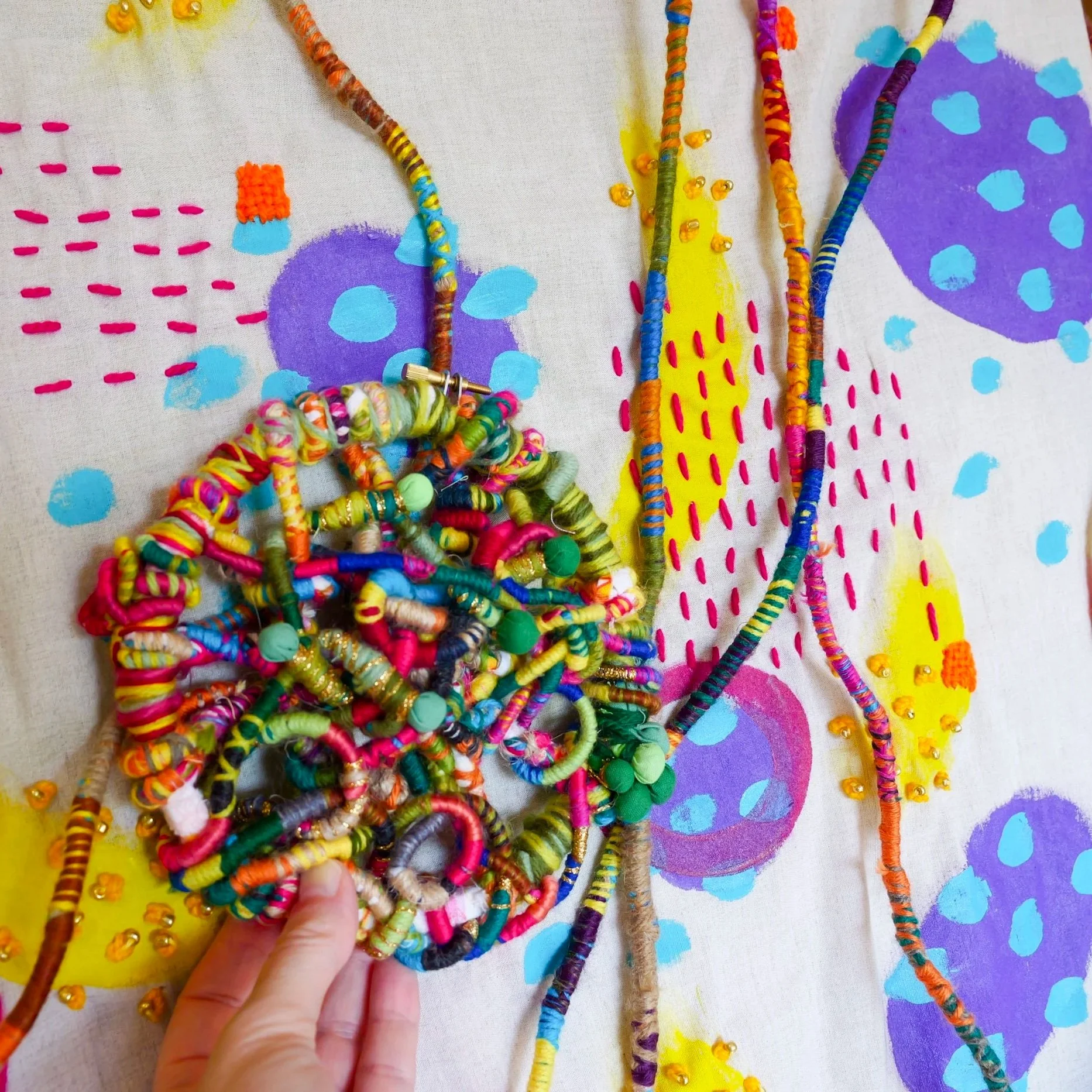 I started with some embroidery; running stitches, followed by some woven and french knot stitches and as the work progressed I realised that this piece hadn’t been given it’s full consideration. It was merely the base layer that was crying out for texture.